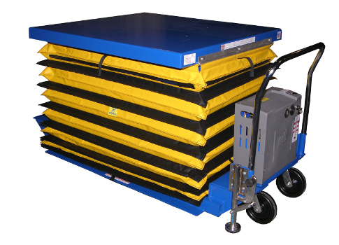 The unit features either a 12-inch recessed or projected lip attached to the deck along with a restraining chain to help prevent the load from moving during tilting. With weight lifting capacities ranging between 1,000 and 4,000 lbs. and deck widths of 36 or 48 inches, these units are capable of handling a wide variety of materials and loads. Among the standard safety features are electric toe guards to protect personnel from pinch points during lowering.