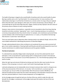 The health of bearings is integral to the overall health of machines and to the overall health of a plant.