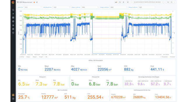 Smart pneumatics, on the other hand, continuously monitor airflow. Some sensors can collect and provide real-time insights on flow, while also capturing pressure and temperature data in the feed line, enabling advanced diagnosis of the operating parameters. These solutions can often easily retrofit to existing machines with the use of edge gateways. Around-the-clock software monitoring can detect leaks in near-real time. The software identifies the machine in question and sends notification alerts directly to maintenance staff so they can further investigate.